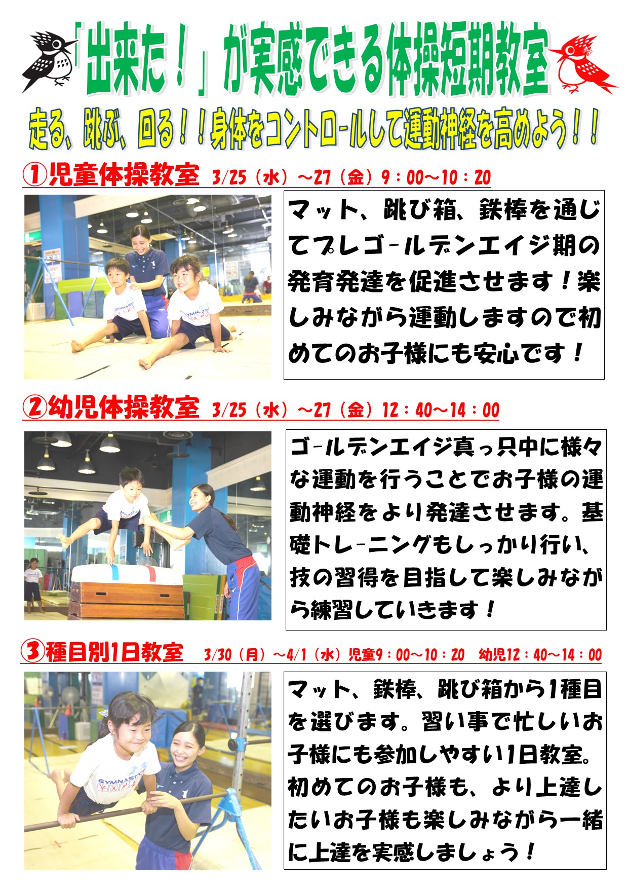 体操短期教室は今回も種目別1日教室をご用意!